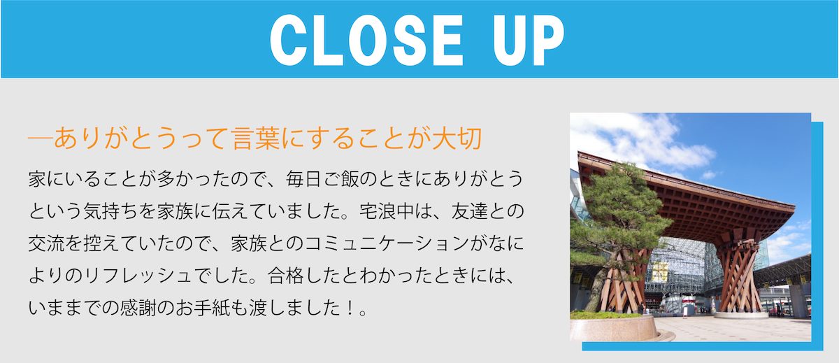 家族の支えがあったからこそ諦めずに頑張って合格を掴めました