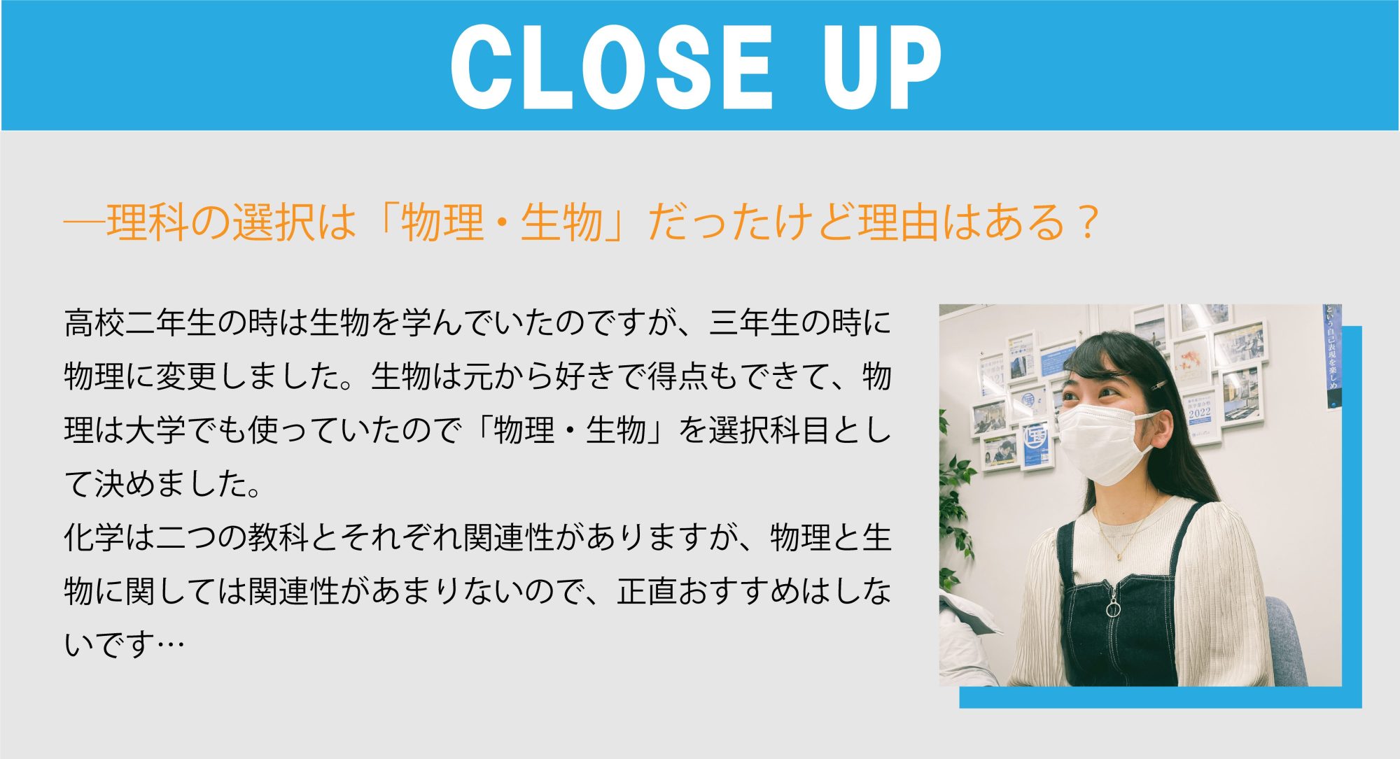 家庭教師の先生がメディセンスでも指導されていて、四科目のバランスの管理や環境の変化を勧められ、メディセンスで勉強することに決めました。