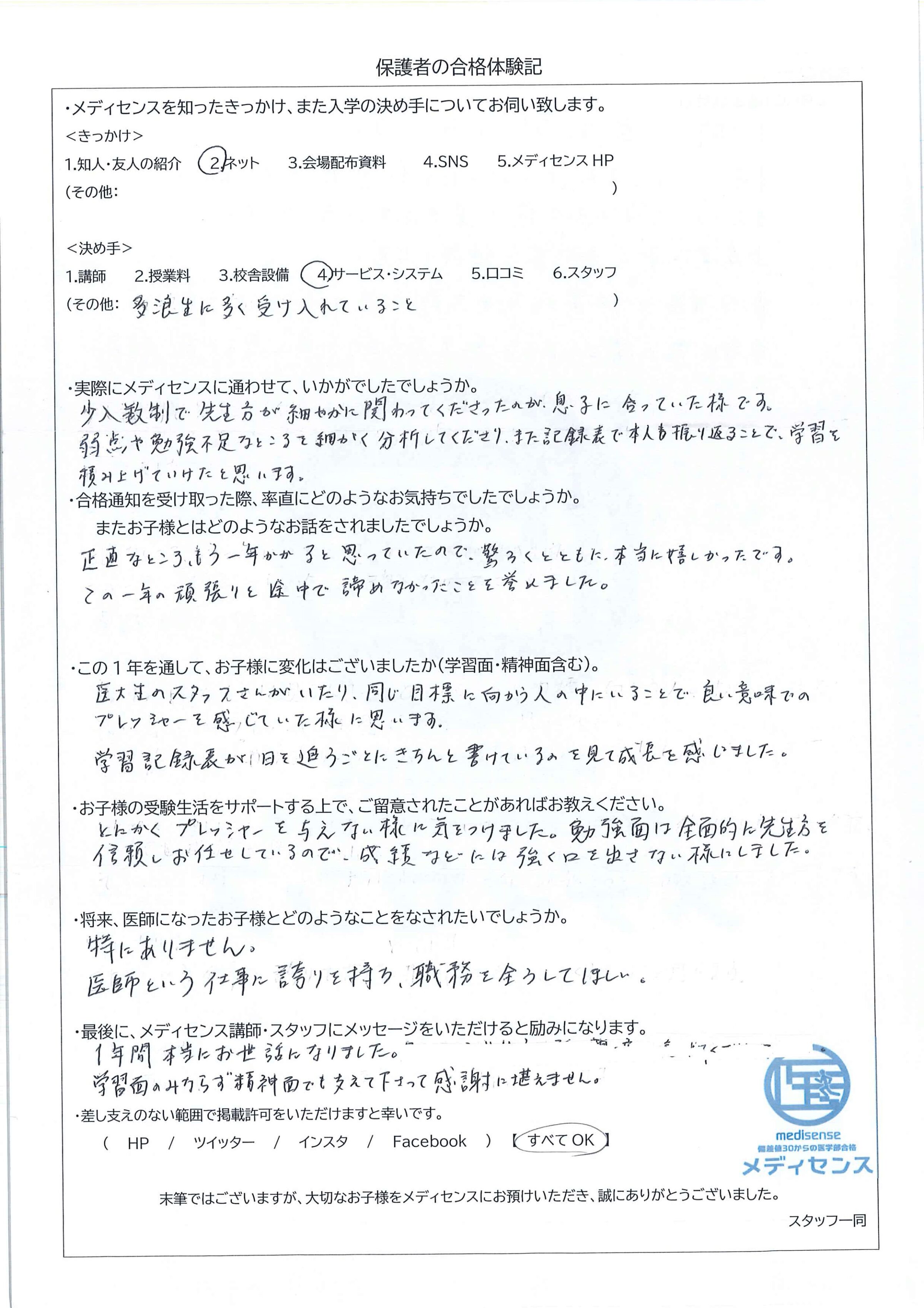 ご両親の合格体験記