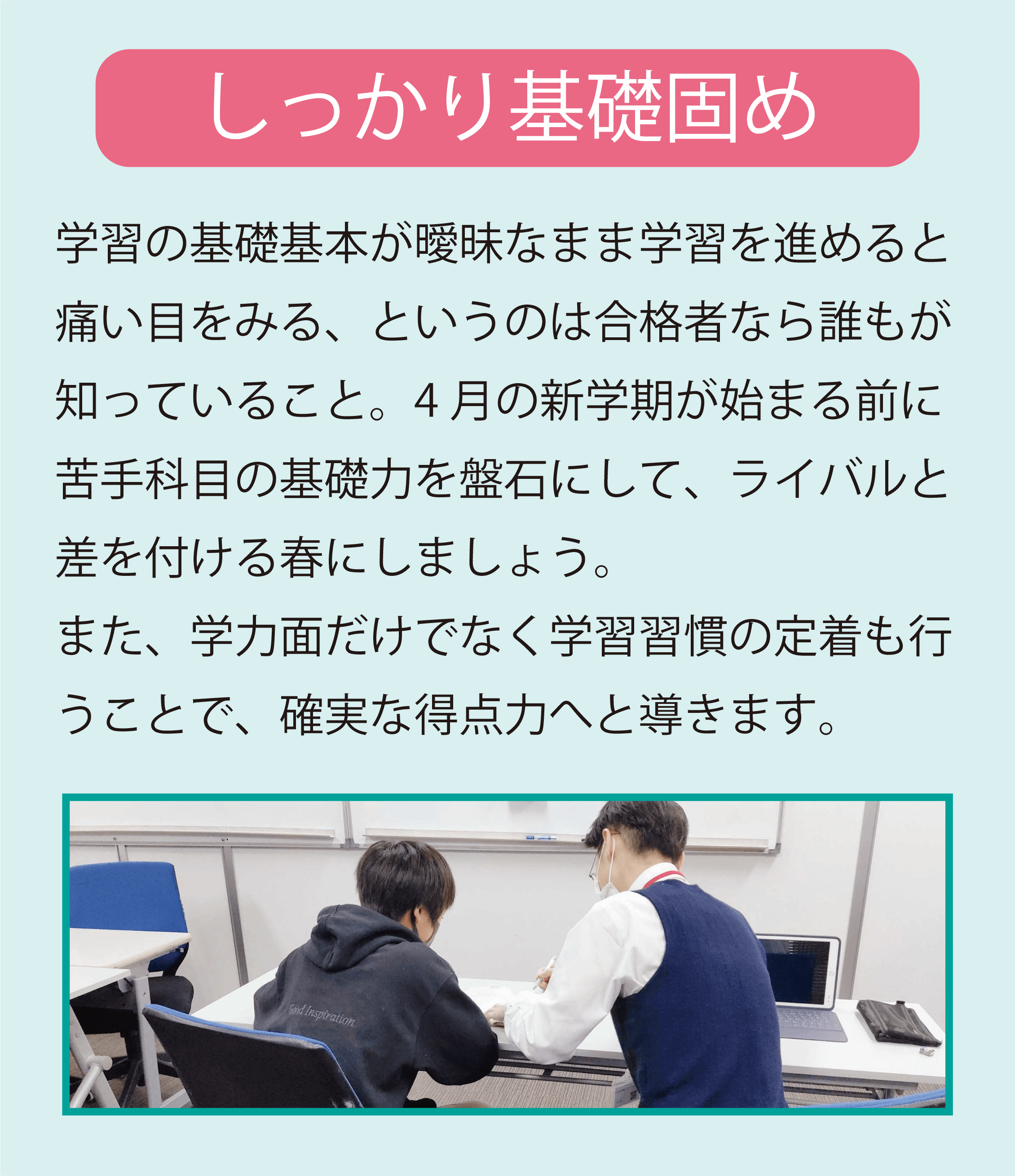 わからない単元や苦手分野をこの時期にクリアにし、新学期のスタートを気持ちよく迎えましょう。