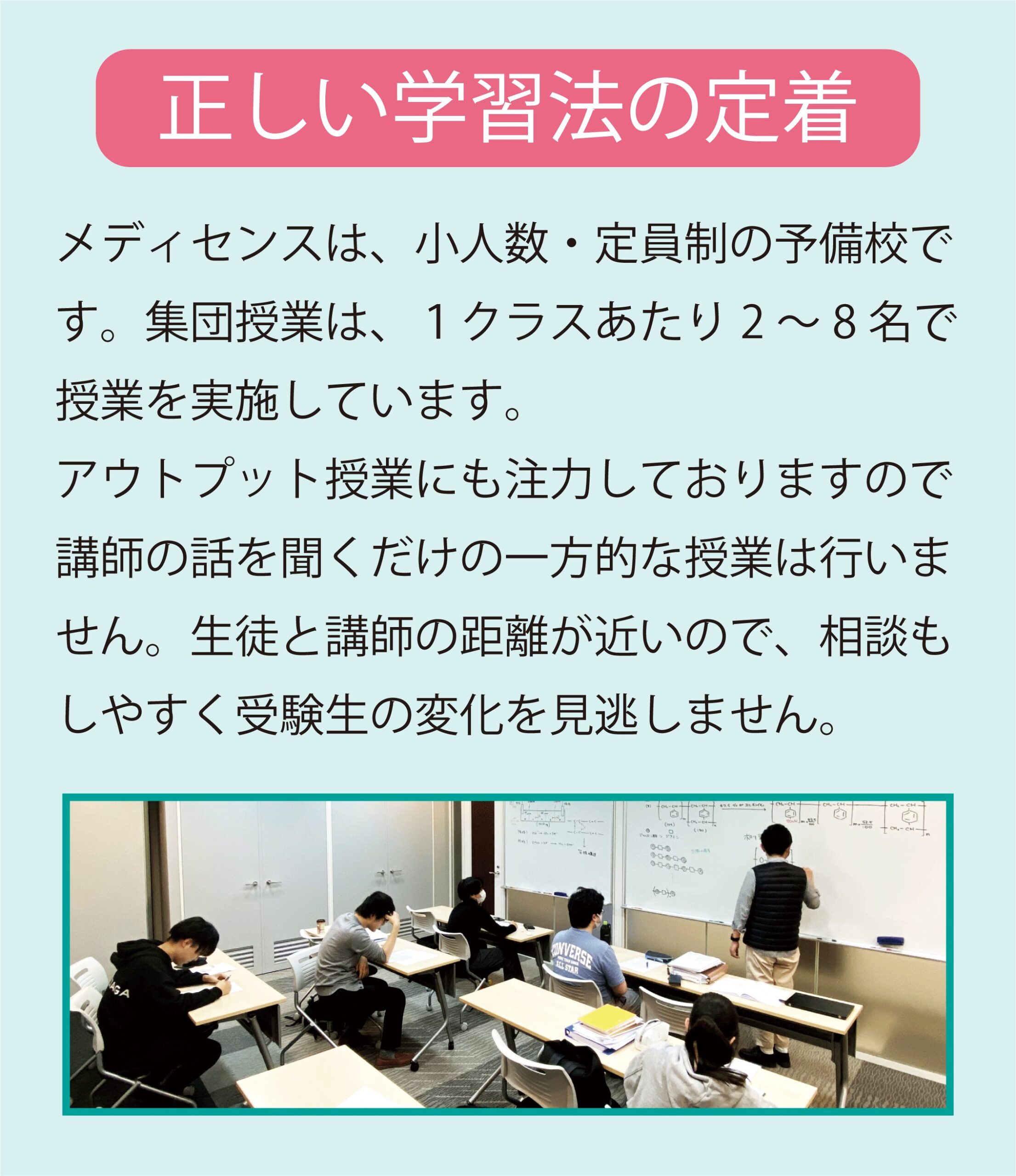 メディセンスでは「集団授業」と「個別授業」をどちらも行っておりますが、