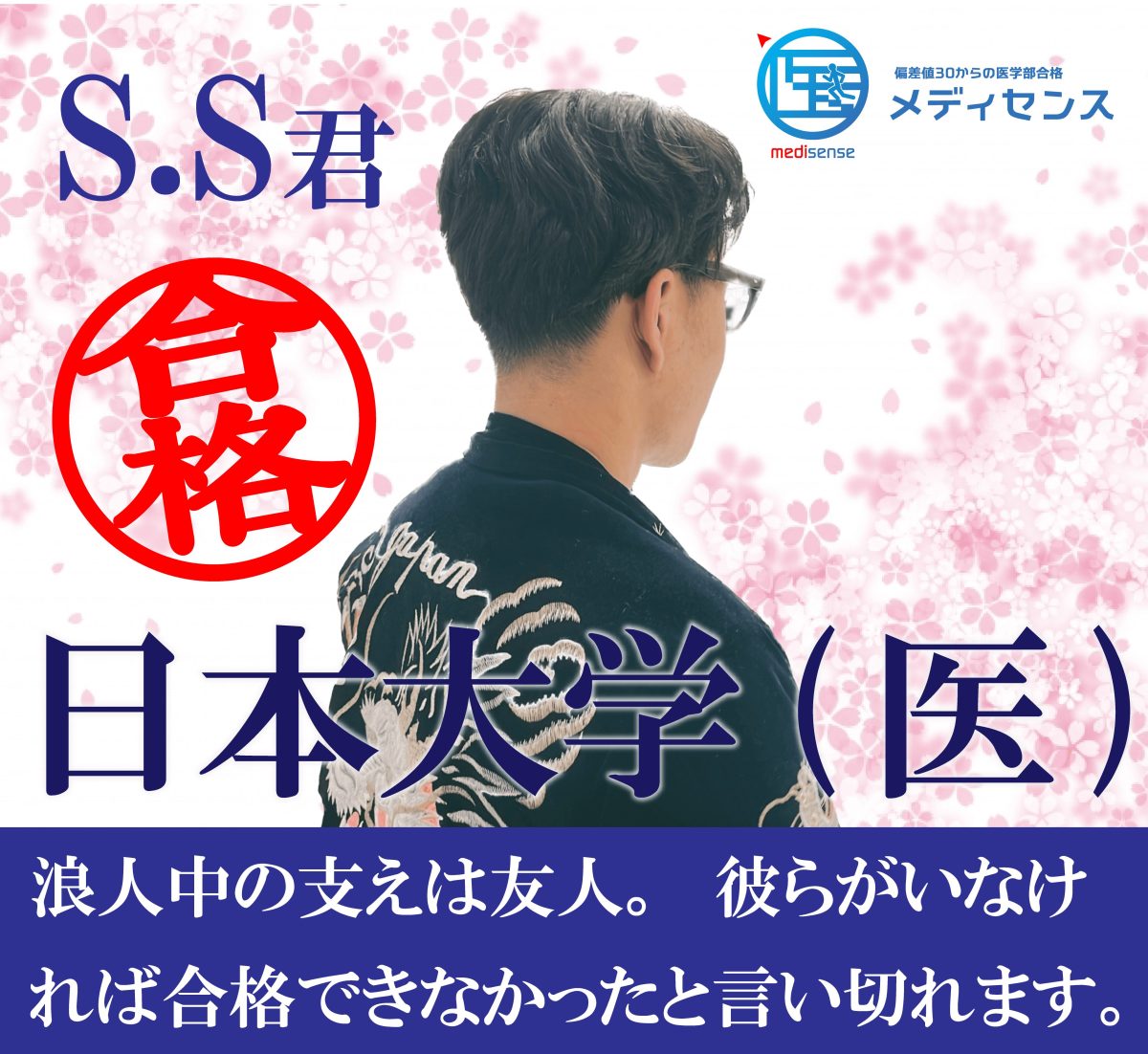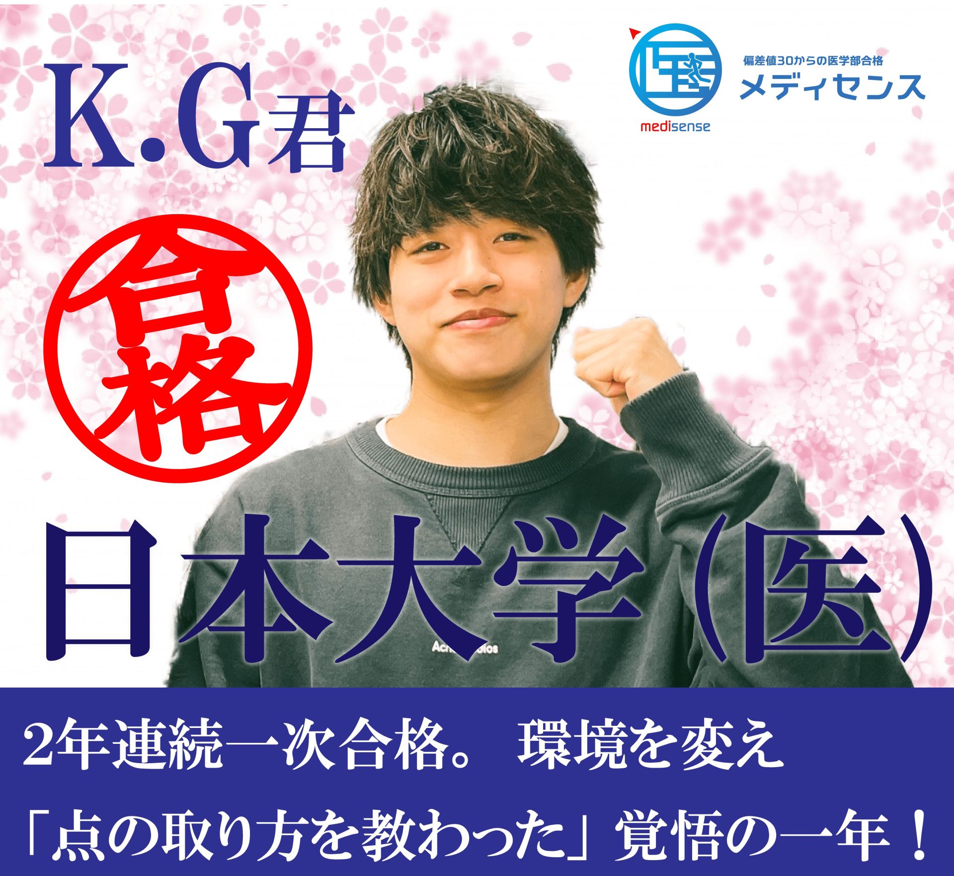 東京で2浪していた頃、数多くの予備校を比較する中で、物理の講師の授業が印象的でメディセンスを選びました。実際に通学してみると、授業が面白く、復習時間も確保されており、出席するたびに学力が向上。給食などのサポートもあり、地方出身者にとっても安心の環境でした。