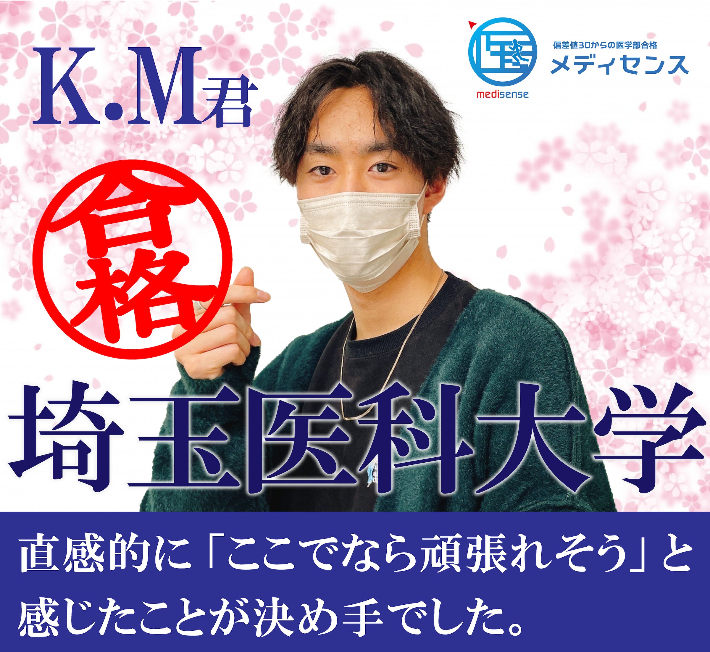 講師や教務の皆さんが、常に本気で応援してくれていると感じることができました。少人数定員制の予備校だからこそ、一人ひとりに対するサポートが厚く、「何年浪人しても、医学部に入れば勝ち」という強い気持ちを持つことができました。